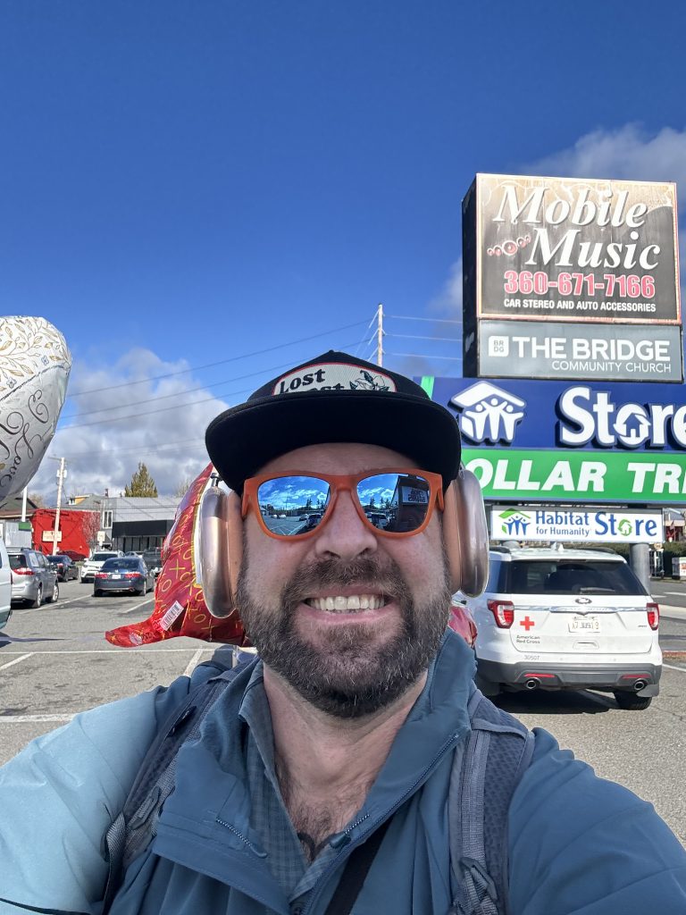 I bought five balloons at the dollar store. Lost two accidentally. Gave two to ladies with heartbreakingly sad, single faces. Instant transformations. One balloon stayed with me, tied to my backpack, floating behind me like a moving declaration.
