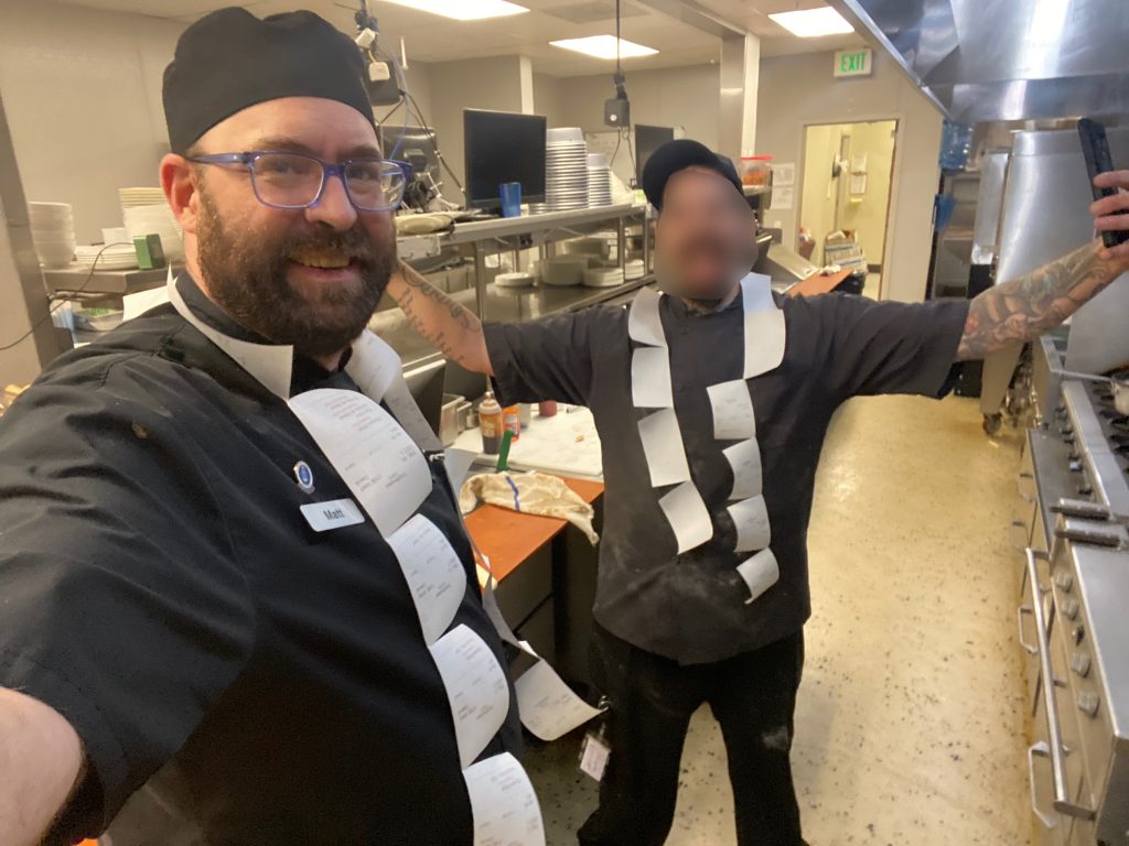 I made food at 3AM in the kitchen and jammed to Sinatra while the blizzard raged outside. I was sous-vide cooking a New York Strip roast. I was having what I would have described at the time as a great night. I slept through my alarm and was woken up at 6AM by the other cook knocking on my door. I threw my chef clothes back on, still wearing them from the night before, and ran to the kitchen and began figuring out breakfast service completely on the fly, because I had never actually cooked breakfast at this restaurant before.