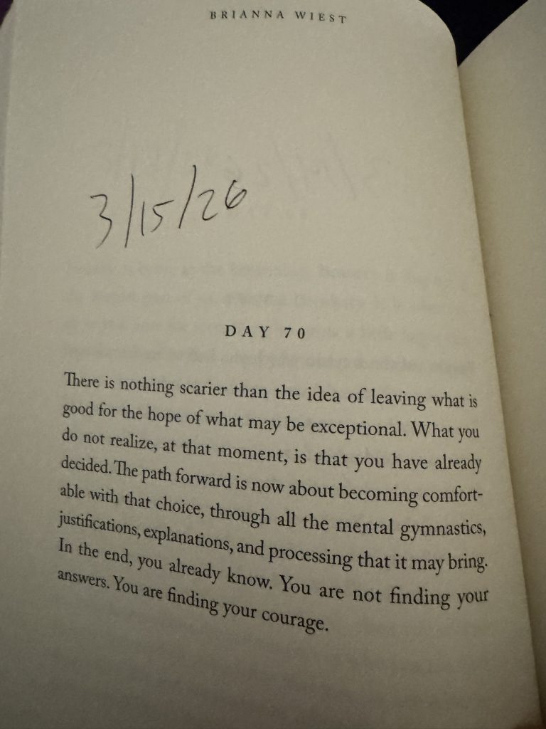 The Pivot Year is a daily meditation. I haven’t finished it because it is not meant to be finished. It is meant to be lived one day at a time. Every entry is about major life transformation. The unknowns. The path you have to walk without being able to see where it goes. Trusting what is coming even when you can’t see it yet.