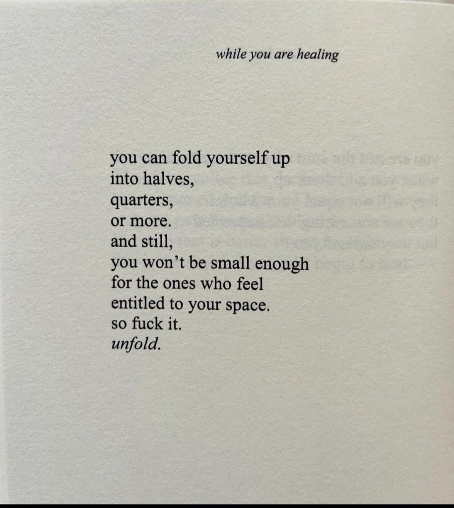 I gave myself permission to stop earning it. To just be it. To walk into a room and take up space without a resume. To want things. To feel things. To say no. To say yes just because I want to. To walk away without explaining why. To speak up the first time instead of the last time. To be loved without performing for it. That’s what it means to finally become love instead of chasing it.